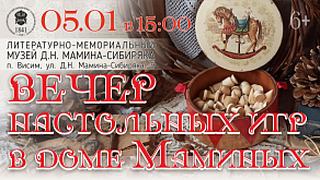 8 и 9 января в 14.00 мероприятие в Литературно-мемориальном музее Д.Н. Мамина-Сибиряка (п. Висим, ул. Д.Н. Мамина-Сибиряка, 9)