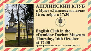 Дорогие друзья! В четверг, 16 октября, ждем вас в Музее «Демидовская дача» на очередном заседании Английского клуба. Начало в 17:30.